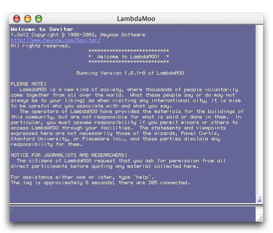 The Savitar session window. (Background colors, font colors and font face are all customizable.)